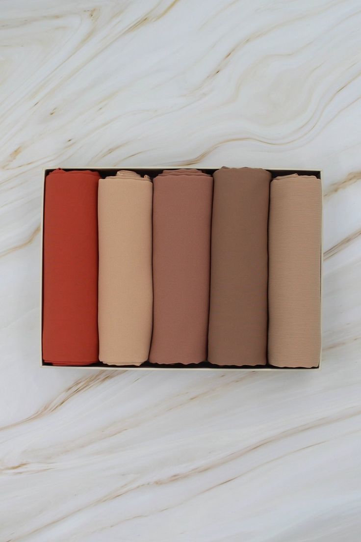 Upgrade your everyday style with this beautiful set of 5 premium georgette hijabs. Soft, lightweight, and perfectly flowy these hijabs are designed to give you a graceful and elegant look without any effort.